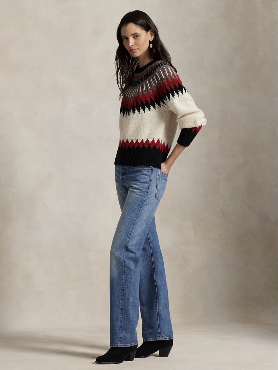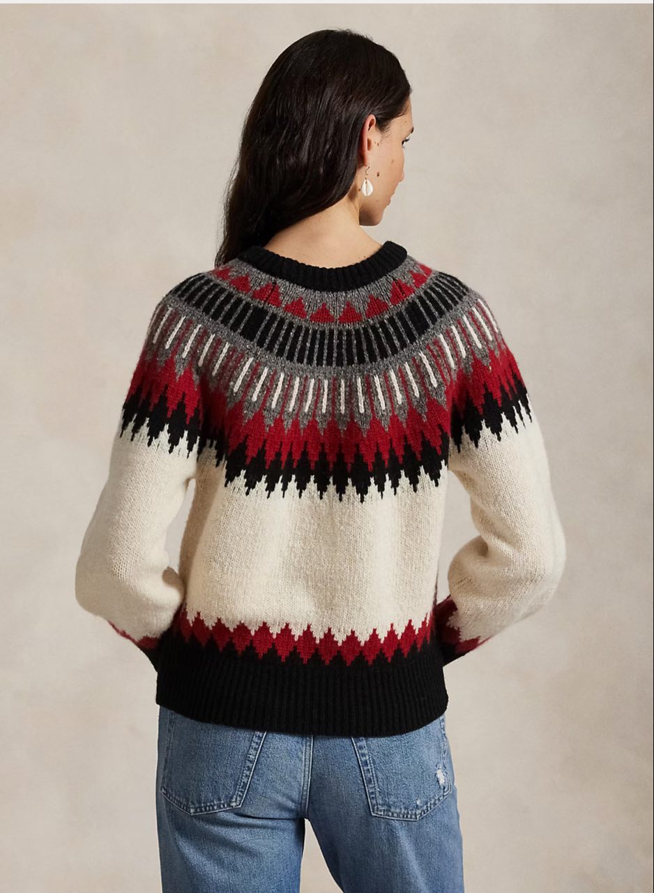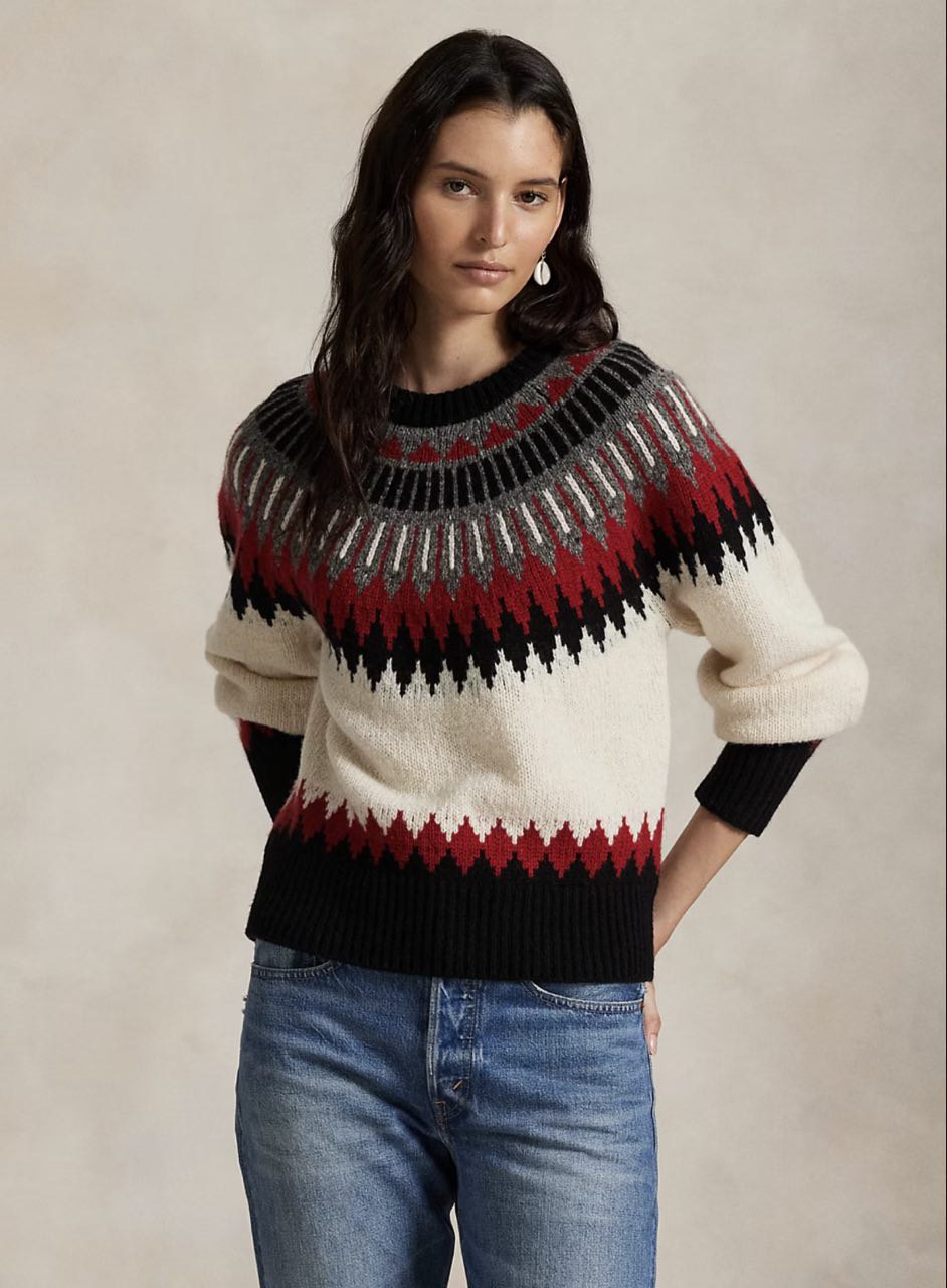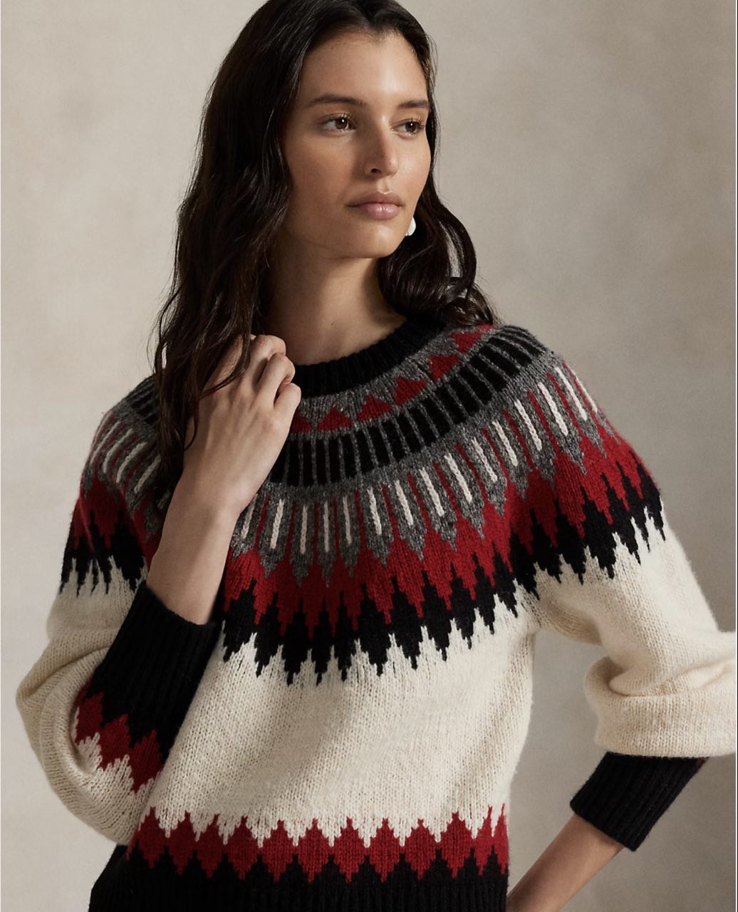 Тёплый, выразительный и очень уютный — этот джемпер словно создан для холодных дней и неспешных прогулок. Модель выполнена с классической круглой кокеткой и жаккардовым узором в скандинавском стиле. Глубокие оттенки бордового, графитового и чёрного эффектно контрастируют с молочной основой, создавая благородный, запоминающийся рисунок. Узоры плавно переходят по кокетке и перекликаются с орнаментом по низу изделия,…