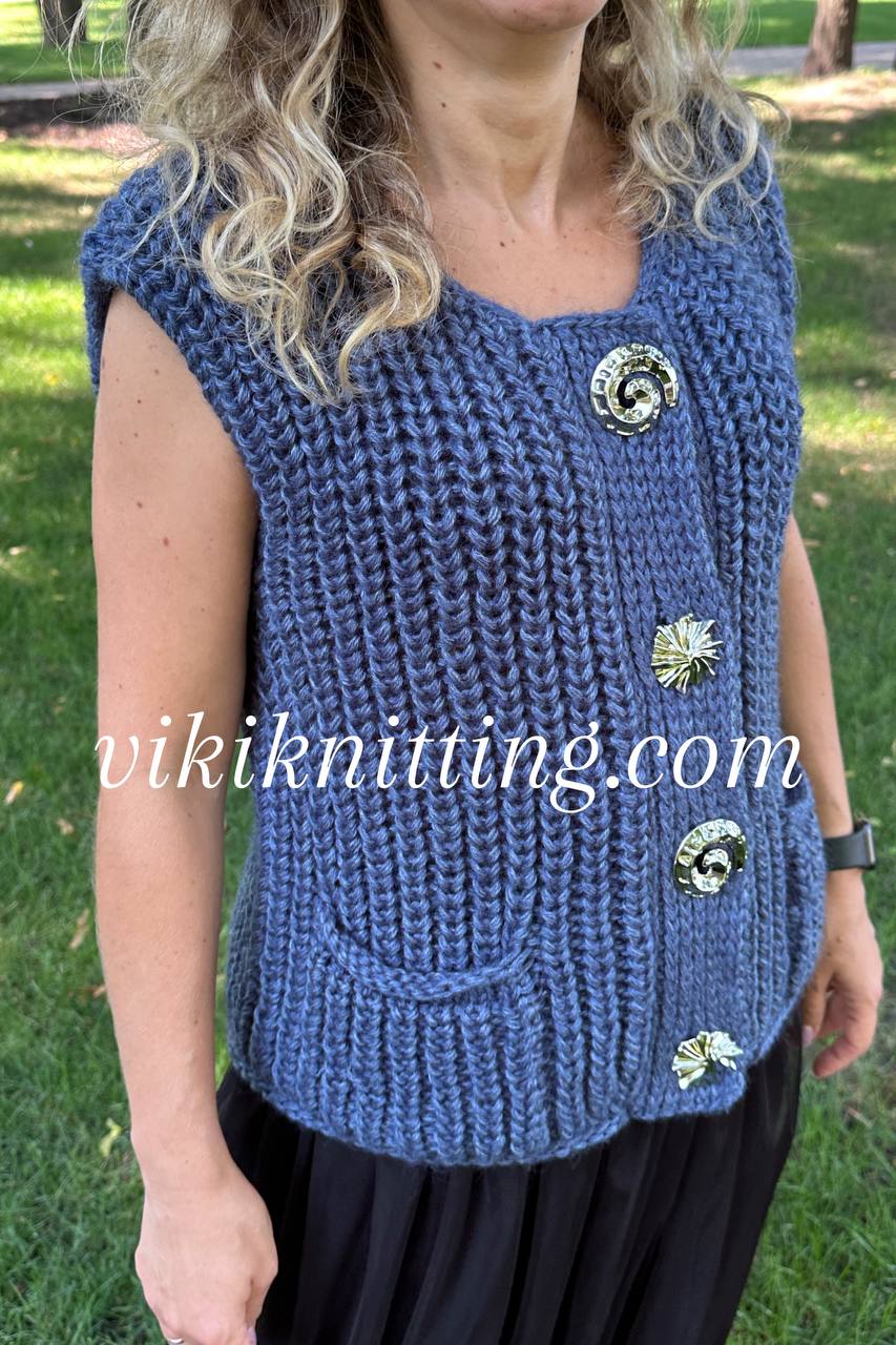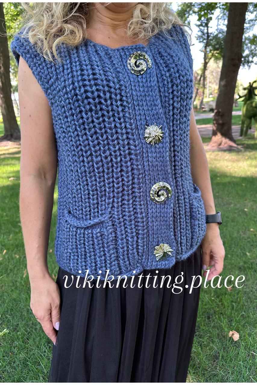 Эта модель – стильный кардиган + жилет 2в1, выполненные крупной вязкой, которые легко адаптируются под любой гардероб. 🔹 Кардиган — свободного силуэта, с цельновязаной планкой, удобными карманами и эффектными декоративными пуговицами. Укороченная длина и объемная текстура придают образу современный и элегантный вид. 🔹 Жилет — выполнен в том же стиле, но без рукавов, что делает…